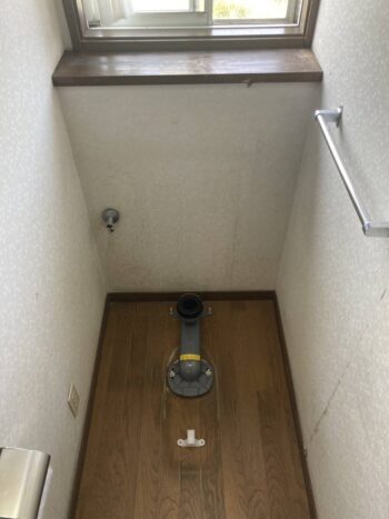 トイレ本体を丸々取り外し、新規の排水位置にソケットなどの取り付けをおこない準備をしっかりと行いました。